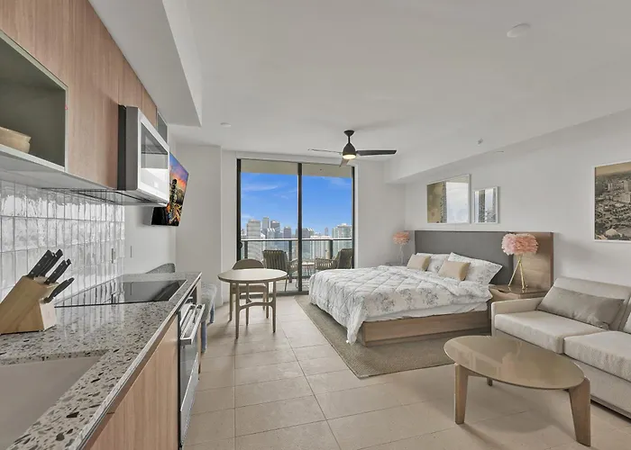 L'appartamento On 47Th Floor! Free Parking & Views From The Top offre servizi di self-catering, come un angolo cottura attrezzato e una zona pranzo all'aperto per la comodità degli ospiti. L'appartamento On 47Th Floor! Free Parking & Views From The Top si trova inoltre a circa 5 minuti a piedi dalla fermata dell'autobus Northeast 6th Street & Biscayne Boulevard e vicino alla stazione della metropolitana Historic Overtown/Lyric Theatre.
